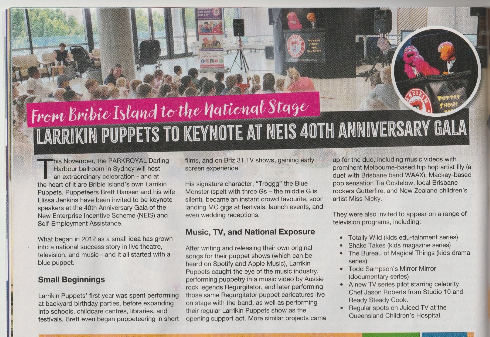 From Bribie Island to the National Stage – Larrikin Puppets to Keynote at NEIS 40th Anniversary Gala