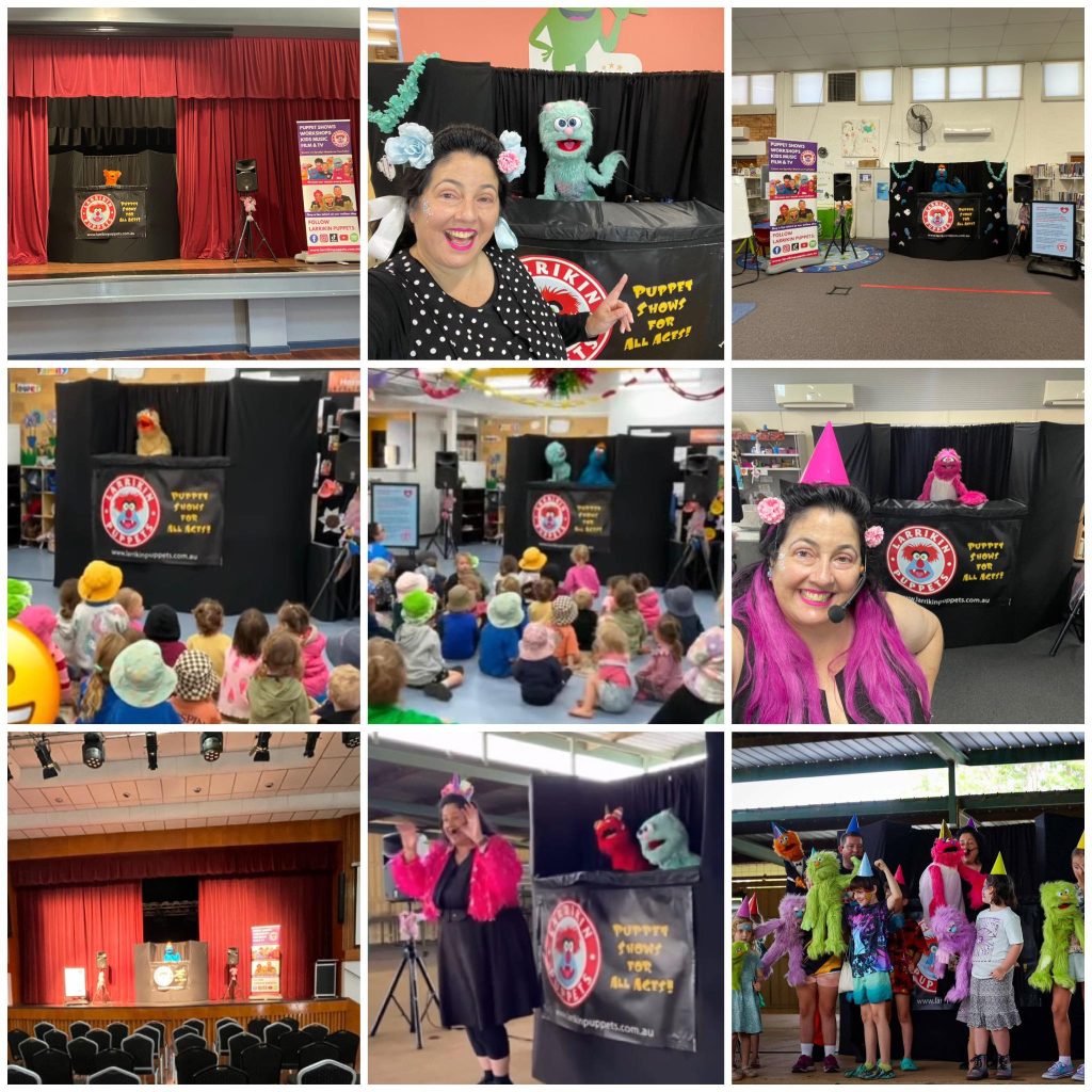 Larrikin Puppets’ first year was spent performing at backyard birthday parties, before expanding into schools, childcare centres, libraries, and festivals. Brett even began puppeteering in short films, and on Briz 31 TV shows, gaining early screen experience.